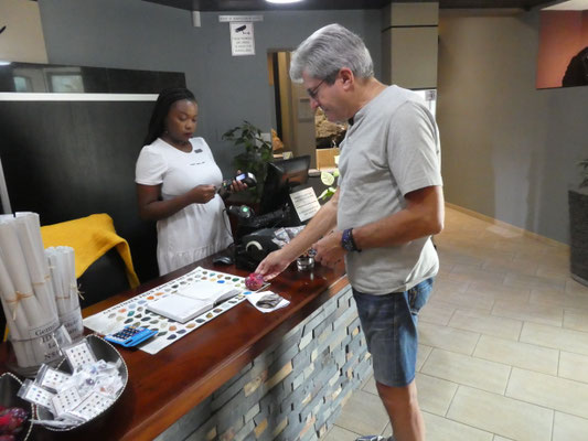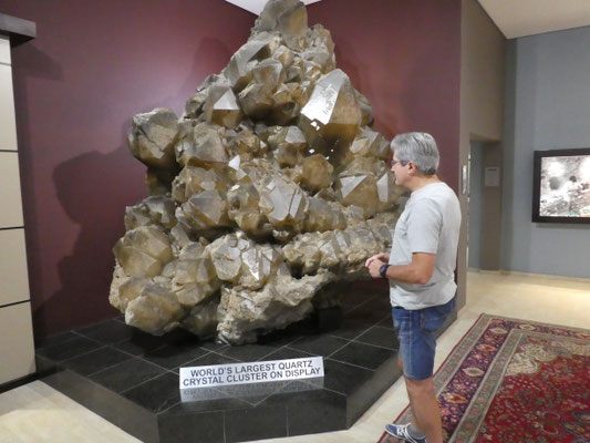 Vor dem Ortsausgang von Swakopmund kommen wir erst einmal an der "Kristall Galerie" vorbei und schauen unverbindlich rein. Na ja, so ganz unverbindlich bleiben der Besuch und die Besichtigung der Ausstellung dann doch nicht. In Namibias Erde werden viele schöne Edelsteine gefunden!
