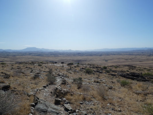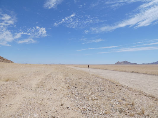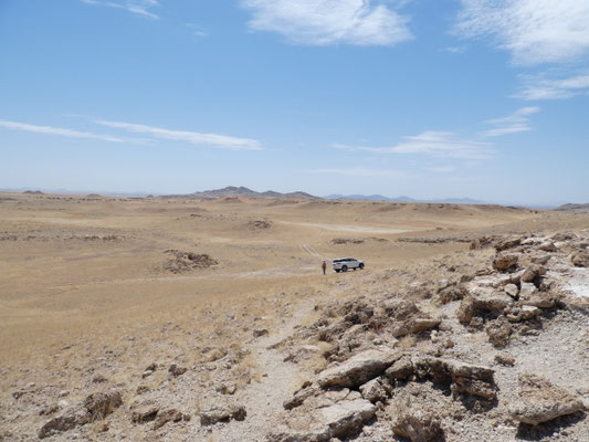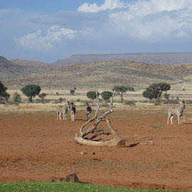 Auf der Weiterfahrt liegen rechts von uns die Sanddünen des 50km breiten "Sperrgebiets", das wegen der Diamantenvorkommen nicht besucht werden darf. Nach rechts Hinweise auf vier versteckt liegende Lodges. Auf dem Weg ins Landesinnere, auf der Piste Richtung "Maltahöhe" finden wir We Kebi.