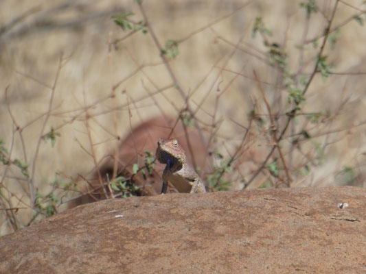 Die "maps.me" APP führt uns wie geplant über Schotterstraßen in drei Stunden hierher. Karge Landschaft, mal Hügel in einer Art Hochebene, dahinter kahle Berge. Der wenige Regen dieser Regenzeit lässt vereinzeltes Grün sprießen, da beeindruckt uns jede noch so kleine Blüte.