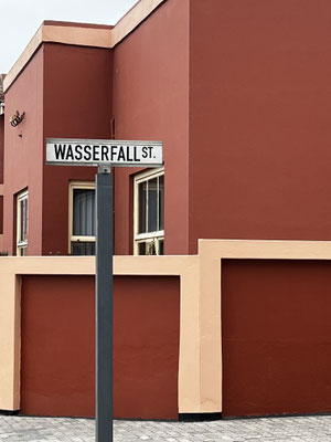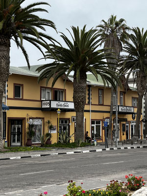 Nachmittags laufen wir kreuz und quer durch Swakopmund und achten auf die vielen deutschen Namen im Straßenbild. Oftmals befinden sich aber neue Betriebe hinter den alten Fassaden. Die Gefühle sind gespalten: einerseits ein Stück anfassbarer Geschichte, andererseits Erinnerung an all die Ungerechtigkeit des kolonialen Erbes.