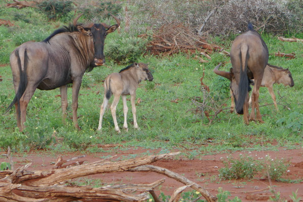 In diesem Jahr an einigen Stellen wasserführend, ein einmaliger Anblick, den gab es die letzten fünf Jahre nicht. Durch diese weite Ebene laufen vor uns Gnus, Zebras, Oryxe, Schakale. Sieht alles sympatisch, naturbelassenaus.