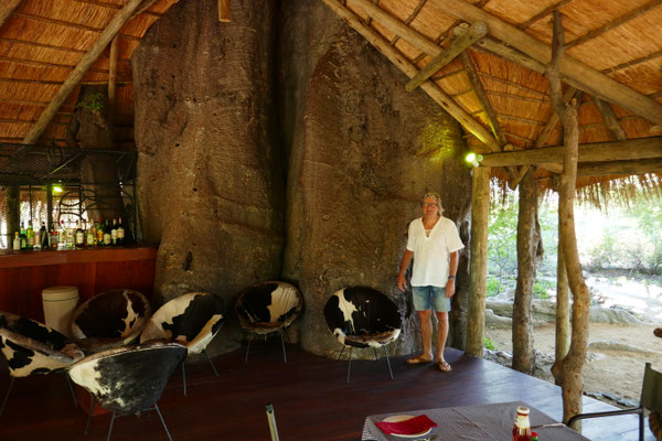 Bar und Restaurant sind an einen mächtigen, über 2000 Jahre! alten Baobab angelehnt, ohne mit ihm fest verbunden zu sein.