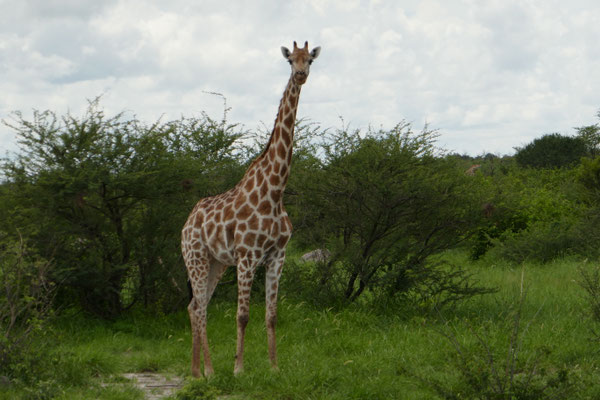 Eine Pferdeantilope zeigt sich in ganzer Schönheit. Wir sehen Giraffen, Störche. Die meisten Tiere haben sich in den noch weniger zugänglichen nördlichen Teil des Parks zurückgezogen. Nach dem vielen Regen sind die ohnehin tiefsandigen Spuren jetzt noch aufgeweicht, wir kommen nicht in den Norden. Das sind auch recht große Entfernungen, der Park ist zwei Drittel so groß wie das Saarland.