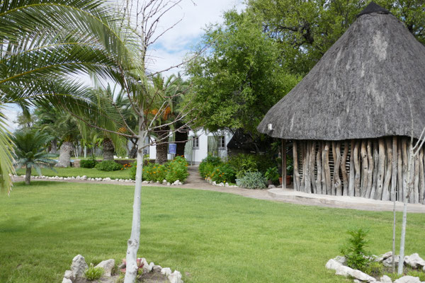 In Gumare hat uns ein Kirchenchor mit seinen Stimmen und Trommeln die halbe Nacht lang mit seinen Proben unterhalten. bietet sich am Freitagabend nach einer arbeitsamen Woche auch an. Hier haben wir Fenster und Türen geöffnet (mit Fliegengittern gesichert) und ganz lange fest geschlafen und unsere holperige Anreise verdaut. Aufwachen bei bester Laune.
