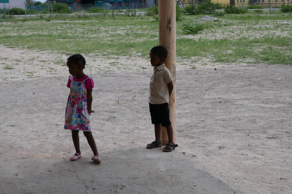 Beim Tanken in Tsumkwe bleibt Ruth im Auto, ich warte bis ein anderes Auto betankt ist. Da gesellen sich zwei Mädels im Sonntagskleid an meine Seite, sie betteln nicht wie oft die San an diesem Platz, ich verstehe nicht so recht, werde aber wohl als Freier umworben. Die Vermutung wird mir später in der Lodge bestätigt.