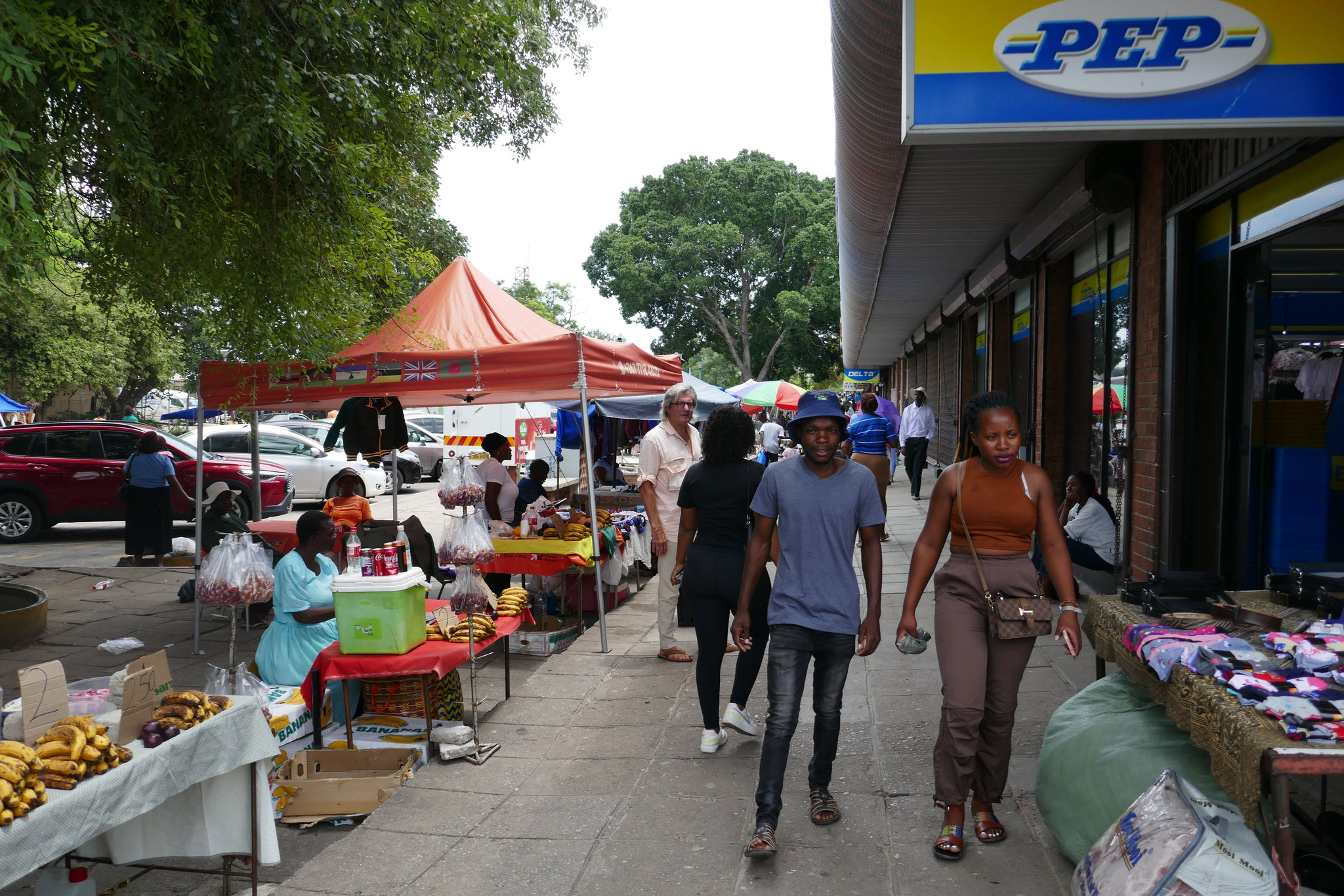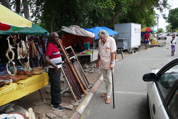 Sonne, 35 Grad, Wolken, gut um noch einmal loszulaufen. Wir frühstücken im Roots of Africa, Restaurant und Gärtnerei. Dort dürfen wir zwei Ableger abknipsen, nach aller Erfahrung werden die sich zu Hause prächtig entwickeln. Auf dem Rückweg kaufe ich an einem der zahlreichen Stände zwei Gehstöcke aus Mophane Holz, sehr stabil, sehr hart, recht schwer. Vielleicht habe ich nach der Knieoperation Verwendung dafür… Etwas weiter gehen wir durch die Francistown Mall, das erste Haus am Platze. Fröhliches Gewusel am Sonnabend Mittag, Wochenendstimmung, bald werden die ersten Geschäfte schliessen. Jetzt wird die Luft drückend, wir erreichen 37 Grad und ziehen uns von draussen zurück. Einige Blitze sind zu sehen, ferne Donner, ein paar vereinzelte Spritzer. Was da wohl noch drauss wird? Dann doch lieber im Auto zum Thorn Tree zum Abendessen.