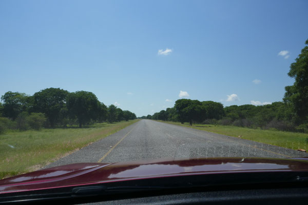 Strasse nach Norden hoch, Richtung Kasane, ist ganz gut zu fahren, allerdings mit gelegentlichen Schlaglöchern. Nach 70 Kilometern erreichen wir Elephant Sands. Kein Elefant weit und breit,