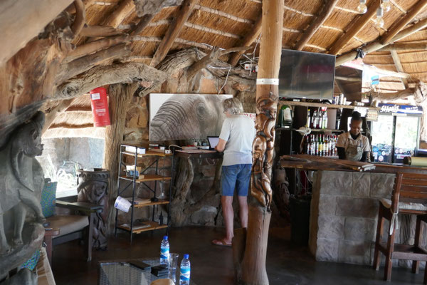 gepflegten Lodge an, wollen einen Kaffee trinken, geht aber nicht, Restaurant ist nicht in Betrieb.