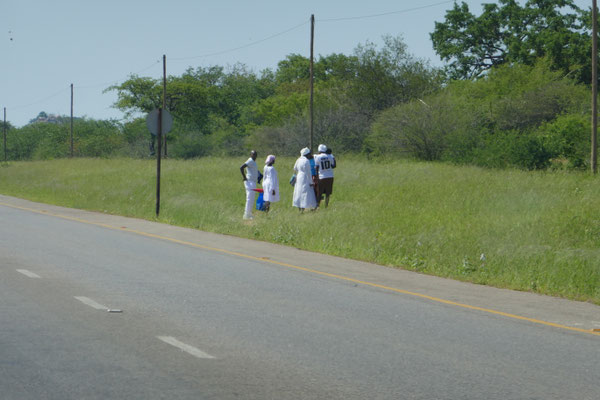 die Polizei gerne mit ihren Laserpistolen. Entspannte Fahrt, mal ganz ohne Schlaglöcher. Viele Menschen mit weisser Bekleidung, ab das am Sonntag oder am Kirchgang liegt? Wir halten an einer