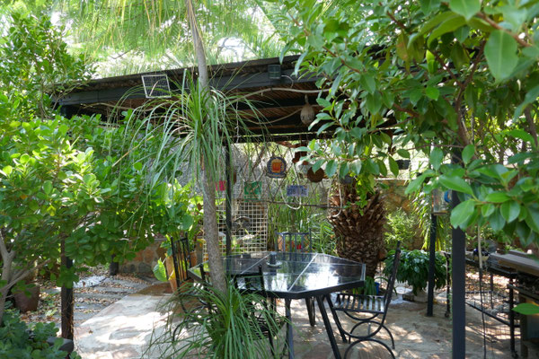 Wir unterbrechen die Fahrt unter einem Schattenbaum, laufen rum, trinken was. Da waren schon ein paar Siedlungen entlang unserer Strecke, aber die Bretterbuden, die sich da „truck-stop“ nannten, sahen nicht einladend aus. Deshalb gab es Mineralwasser statt Capuccino oder Americano. In Francistown finden wir nach etwas Suchen unser Air BnB, freundlicher Empfang, sehr viel Platz, alles gut. Wir haben in den Wochen hierhauptsächlich gesessen. Wäre ja schön, wenn wir jetzt mal durch die Stadt laufen könnten. Ist kein Problem, hören wir und laufen 20 Minuten zum Thorn Tree Restaurant zum Abendessen. Dann wird esdunkel, die Strassen haben keine Strassenbeleuchtung, aber die einzelnen Anwesen rechts und links beleuchten aus Sicherheitsgründen ihre Aussenmauern. Das reicht so gerade eben, um unseren Weg nachHause zu erkennen.