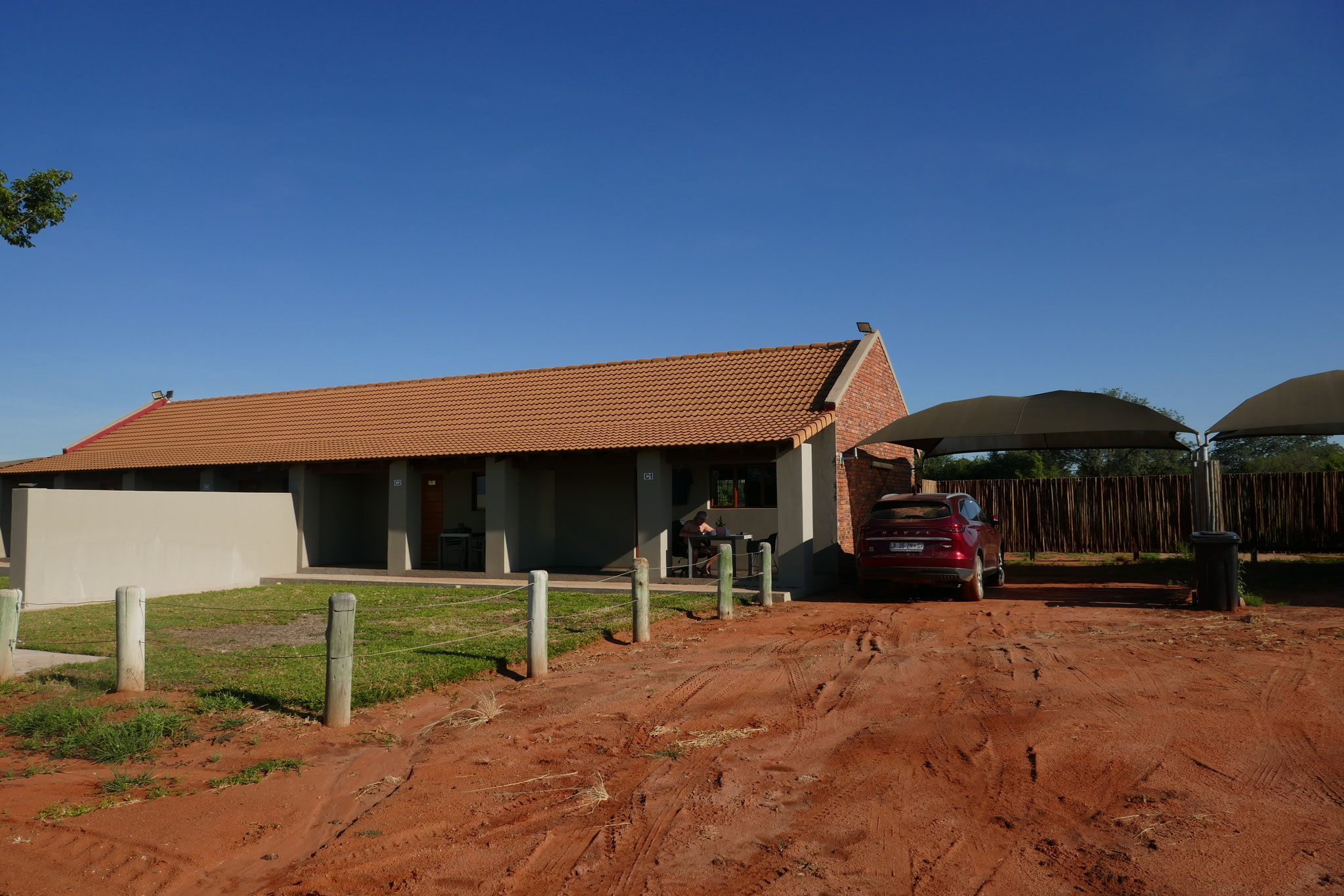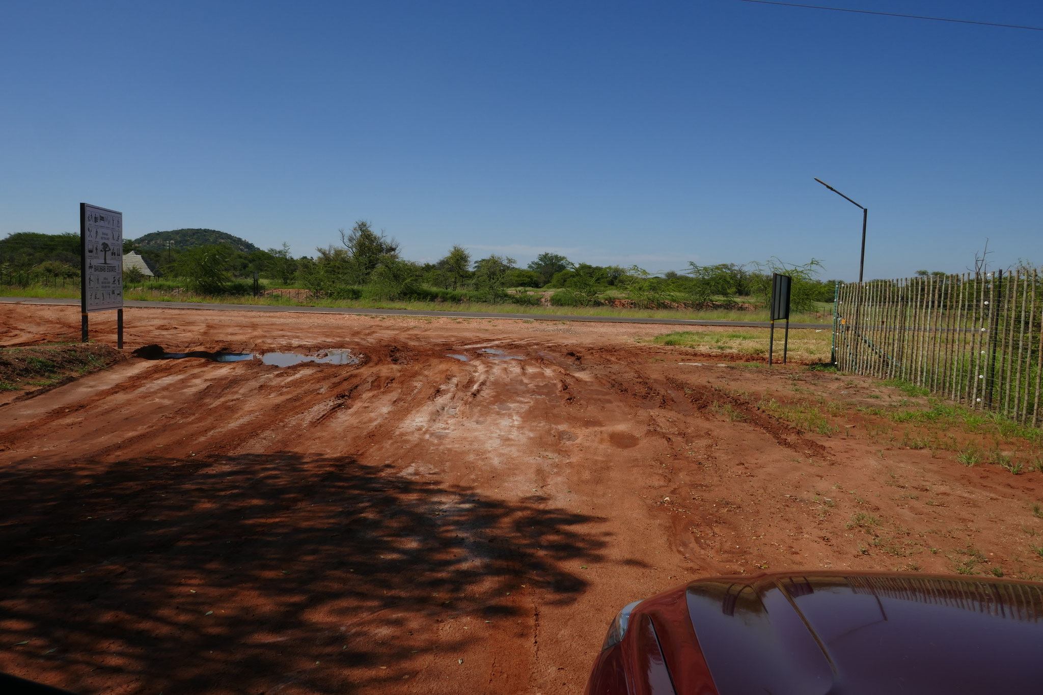 Die ersten Meter gute Asphaltstrasse. Dann Sandpiste mit Senken, eine davon gleich mal mit Wasser gefüllt. Durchwaten, Wassertiefe prüfen, alles machbar, also durchfahren. Wir brauchen endlose zwei Stunden. Bürokratische, unkomplizierte Ausreise und gleich danach Einreise. Jetzt reicht‘s, wir wollen unseren Zwischenstopp. Mitten auf dem Feldweg, zwischen zwei Zäunen, rotes Flatterband. Zu eng zum Wenden, also im Rückwärtsgang zur Strasse. Anruf bei der Lodge: die sind geschlossen, da der hintere Teil des Zugangsweges tief unter Wasser steht. Mein Telefon meldet: jetzt ist mein Telefonie Guthaben aufgebraucht.