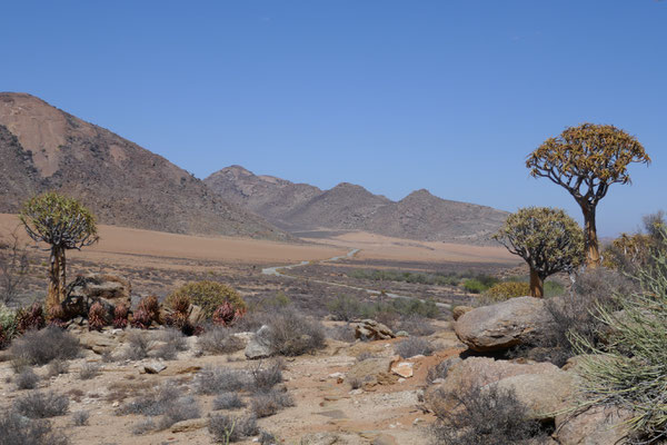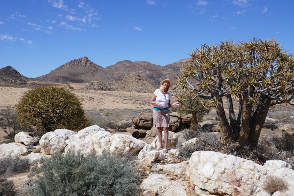An einer Gärtnerei kaufen wir einen ganz kleinen Köcherbaum mit Zertifikat für die Ausfuhr. Mal sehen, ob wir das Teil in Deutschland durchbekommen, frostfest sind die Köcherbäume.