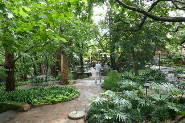 Das w-lan im Roadhouse war schon äußerst schwach, hier haben wir gar kein w-lan. Da brauchen wir dringend Trost: Für Ruth eine Fußmassage, für mich eine Rücken-/Nacken-/Kopfmassage. Von einer überaus kräftigen schwarzen Lady, die ihr Metier hervorragend versteht! Nach dem Abendessen steige ich im Innenhof unseres Chalets in den Whirlpool und bestaune den afrikanischen Sternenhimmel über mir. So bekomme ich doch noch so etwas wie das von Kalle erinnerte Vergnügen, ein kleiner Trost.