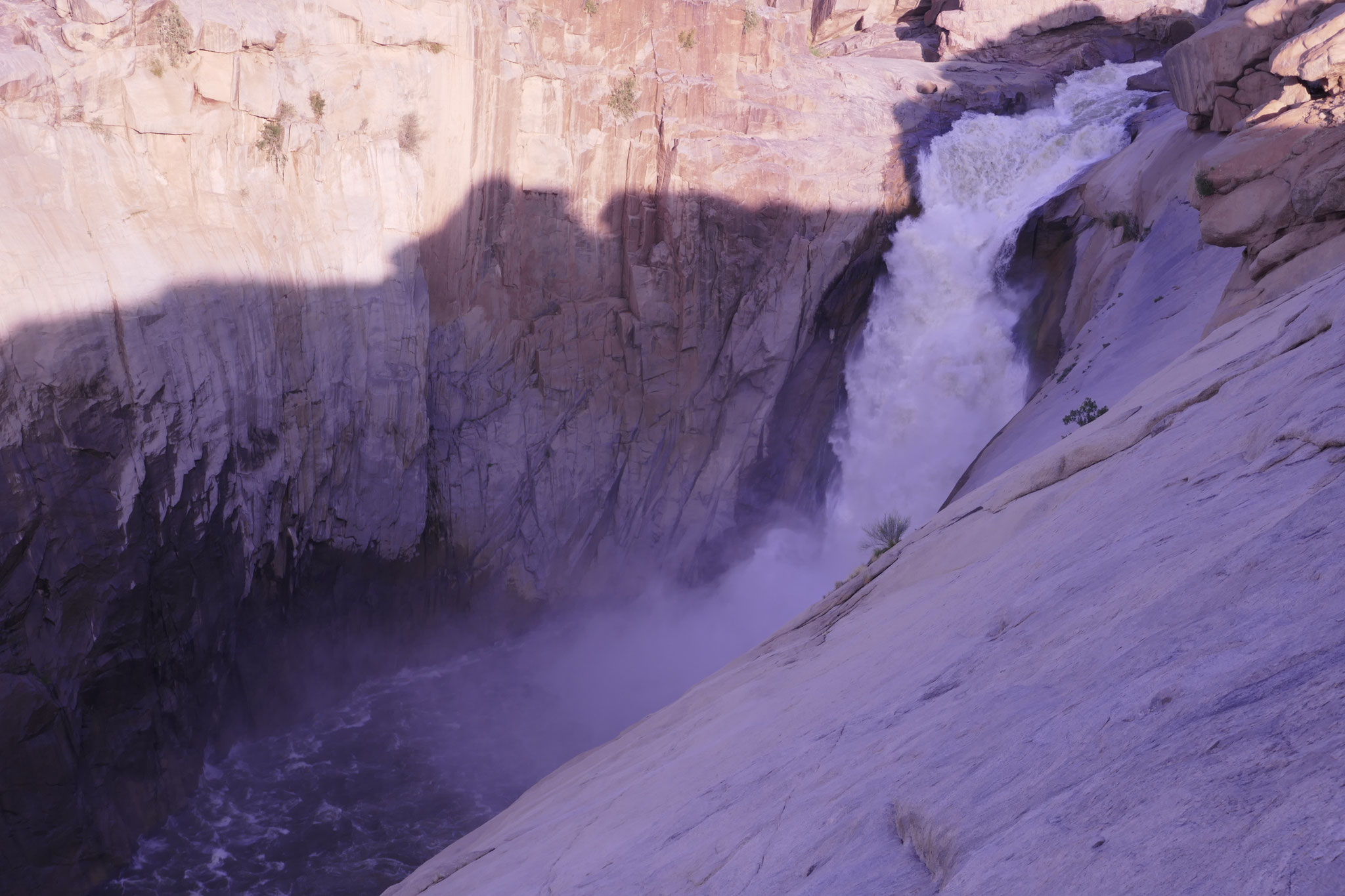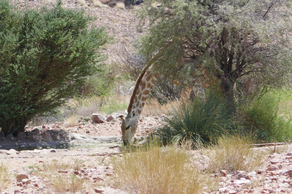 Wir fahren Teile des 91 Kilometer Rundweges im Park ab. Die Aussichtspunkte sind sehr schön gelegen, tolle Blicke in die Schlucht, mal auf ruhiges, mal auf tosendes Wasser. Aber angesichts der langen Trockenheit tost da so viel nun auch wieder nicht. An einem Wasserloch beobachten wir eine einzelne Giraffe und sind ganz stolz, wenigstens ein größeres Tier ganz nahe gehabt zu haben.