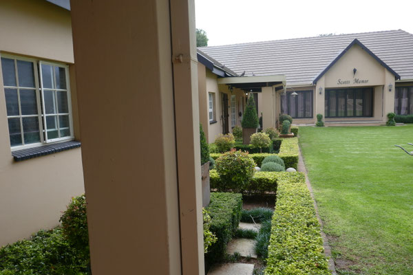 Das Scotts Manor ist nicht nur äußerlich, sondern auch innen sehr schön gelungen. Da macht das Frühstück Spaß, wenn auch die Option Continental breakfast für Ruth fehlt (Ich kann einfach keine Eier oder Speck mehr sehen und riechen....gelobt sei das "typische, gesunde deutsche Frühstück".. das dazu..(Schwarzbrot, Mortadella, Salami, Früchte, Leberwurst. griechischer Joghurt......) Jetzt endlich mal laufen! In die Stadt. Da ist heute Streik im öffentlichen Dienst. Keine Touristeninformation, kein Museum, viele Menschen auf der Straße und bei einer Kundgebung in der Stadthalle. Die Aufzuchtstation für gefährdete Wildtiere wurde vor einem Jahr geschlossen. Damit sind die Attraktionen durch. Also Zeit zum Lesen, Ausspannen, schreiben.