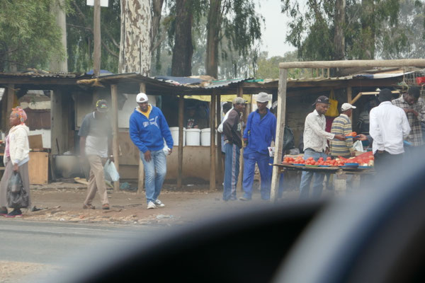 Im ganz kleinen Ort Augrabies, direkt am Ende der Welt, finden wir einen ATM und einen Laden. Gelegenheit, Gemüse für unseren Grillabend zu kaufen und 2.000 Rand abzuheben. Vorher waren ein paar schwarze Arbeiter eine ganze Zeit am Geldautomaten gewesen, die Quittung hing noch im Gerät, 20 Rand, so 1,50 €. Geld für das Wochenende. Da werden auf einen Schlag die Gegensätze erfahrbar.