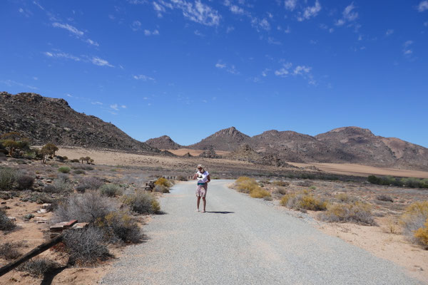 Springbock erleben wir als sympathische kleine Stadt. Wir bleiben im Mountain View oberhalb der Stadt. Gute Gegend, schön angelegt, großes Zimmer, nette Vermieterin. Wir stellen bei uns beiden eine große Gelassenheit fest. Wir fühlen uns eins mit dem Lebensrythmuss hier. Bloß nicht aufregen, alles schön, für alle Probleme gibt es irgendeine Lösung.