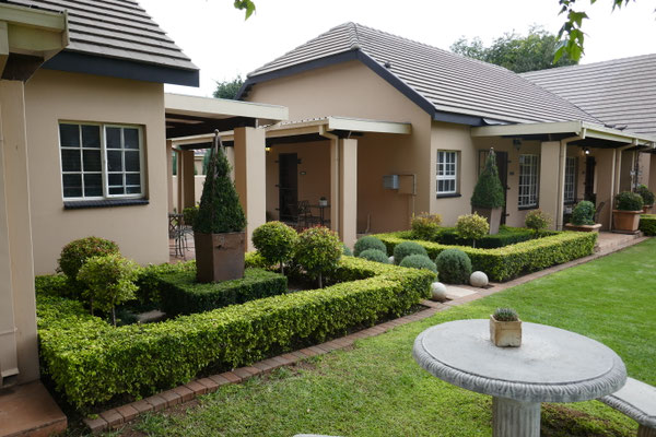 Wir fahren durch ebene, saftig grüne Landschaft, 3,5 Stunden nach Lichtenburg. Durch wolkenbruchartigen Regen, an Unfällen vorbei, viel Polizei. Überflutete Straßenabschnitte zwingen öfter zur Langsamfahrt. Lichtenburg macht einen vernachlässigten Eindruck mit großen Gegensätzen: ein paar Stadtteile am Rande sind sehr gepflegt, da steigen wir im Scotts Manor ab. Ausladen, Durchatmen, Superabendessen im Ocean Basket, einem Franchiseunternehmen von hervorragender Qualität. Immer wieder Regenschauer, in den Pausen laufen wir hin und zurück, vor Einbruch der Dunkelheit so gegen 20.00 Uhr kein Problem.