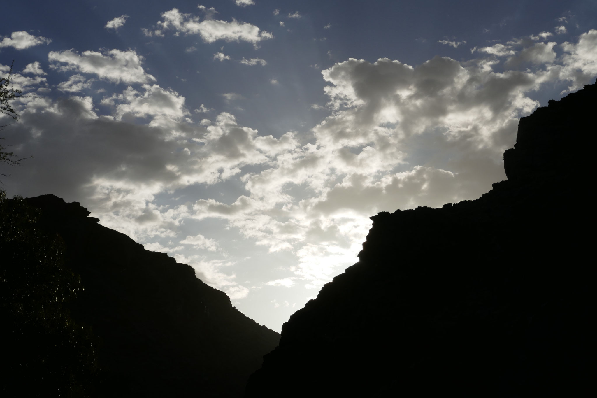 Zur Abreise in Ai Ais erleben wir tolle Lichtverhältnisse da unten im Canyon des Fishrivers. Die Sonne beleuchtet eine Hälfte der steilen felsigen Abhänge, die andere Hälfte liegt noch im Dunkel. Man kommt sich da unten recht klein vor. Beim Grenzübertritt zurück nach Südafrika zunächst die Ausreiseformalitäten in Namibia, Niemandsland, dann die Einreiseformalitäten nach Südafrika. Die Zollbeamten als letzte Kontrollinstanz entdecken ein Bündel Feuerholz auf unserer Ladefläche. Das geht gar nicht, da könnten Larven drin sein, zurück, muss desinfiziert werden. Dazu haben wir keine Lust, ich stelle dem Zollbeamten das Paket an den Straßenrand, er nimmt die Gabe für die Desinfektionskollegen an. Wir haben alles Verständnis: Die Maisernte in Südafrika ist seit Jahren sehr dezimiert, weil in der Regenzeit viel weniger Regen runterkommt, als normal. In diesem Jahr ist wohl über Reisimporte ein Wurm eingeschleppt worden, der weiter Mais vernichtet. Da liegen die Nerven blank.