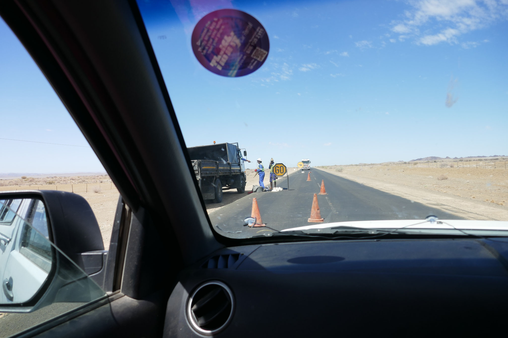 Baustellen halten einen auf, sie sind ein Ärgernis. Erfreulich, wenn sie so gut gesichert sind. Ein Mensch am Anfang der einspurigen Verkehrsführung, ein anderer Mensch am Ende, dazwischen zwei Kilometer Baumaßnahmen. Da warten wir gerne, bis wir an der Reihe sind und das Stopp Schild in ein Go Schild gedreht wird. Wir geben ordentlich Gas, der hinter uns auch. In der Ferne zwei wartende große LKW. Dachte ich. Dann wurden die schnell größer, kamen uns entgegen. Regelwidrig. Ob sie wohl ausweichen würden? Wir haben auf den Test verzichtet, sind in die Bremsen gegangen, haben uns in den Baustellenbereich begeben und die größeren vorbeigelassen.