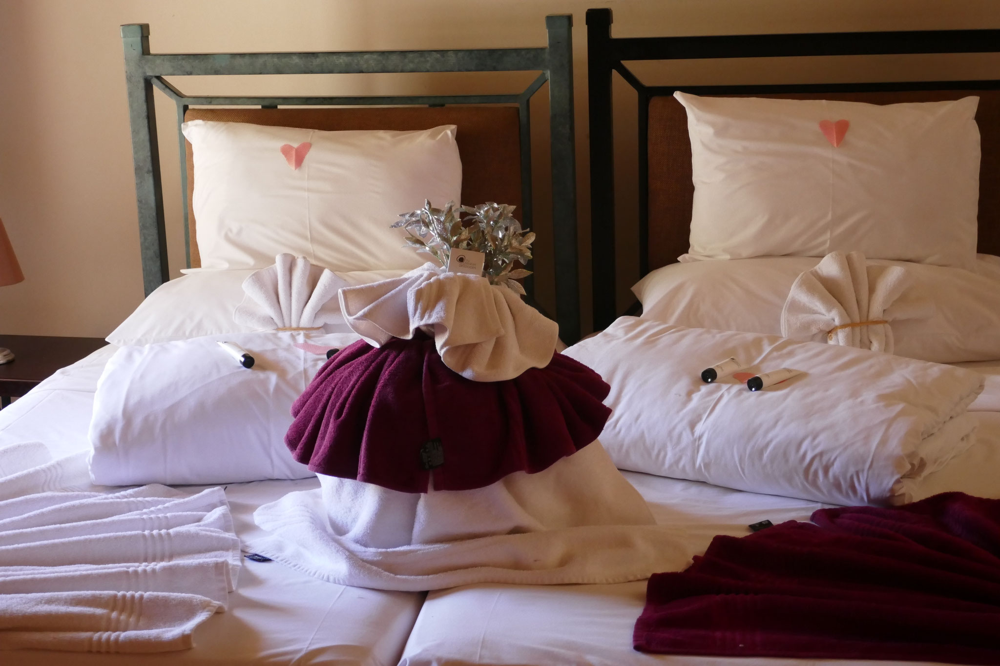 Heute ist Valentinstag, das ist eine große Sache im südlichen Afrika. Im Canyon Roadhouse lag an jedem Frühstücksteller ein Herz mit zwei Pralinen. In unserem Chalet in Ai Ais waren Tische, Wände und Betten mit Herzen dekoriert, über dem Doppelbett noch eine bunt blinkende Girlande.