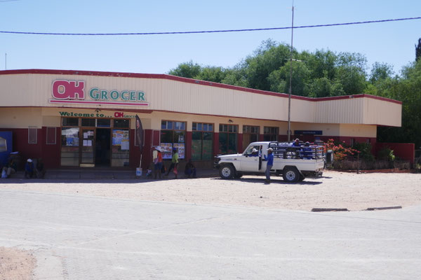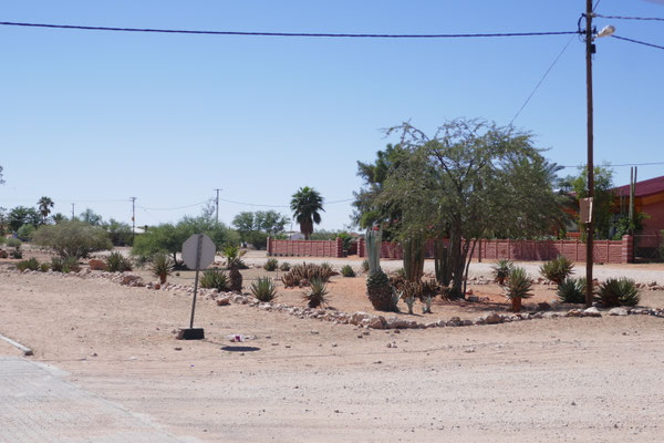 Die Karte verzeichnet Gochas als kleinen Ort. Die Reiseführer fenden den Ort keiner Erwähnung wert. Wir wollen schon weiterfahren, da siegt die Neugierde, abbiegen, das Flußufer einen kleinen Hügel hoch und: Überraschung, ein kleiner gepflegter Ort, wie mit dem Lineal angelegt, kleine Grünfläche im Mittelpunkt, zwei Hotels zur Auswahl: Stoney's Country Hotel oder das Business Center. Das Hotel macht einen guten Eindruck, das Center mit seiner einfallslosen Betonarchitektur erscheint abweisend. Das Hotel in weissem Privateigentum, das Center von der Tourismusbehörde erbaut und an die Gemeinde vermietet, dort sind nur Schwarze.
