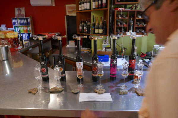 Uns graust vor der Weiterfahrt nach Süden, denn die C 13 war bei unserer letzten Reise voller Schlaglöcher und erlaubte maximal 30 km/h. Jetzt zweigt die Strasse aber erst 12 km später ab und ist eine tolle Sandpiste die 100 km/h erlaubt. Freude! Plötzlich tauchen mittem im Karstland Palmen auf und Weinstöcke und Granatapfelbäume. An einer Stelle, an der die Schutztruppe schon den Löwen Fluß aufgestaut hatte, wurde jetzt ein größerer Damm gebaut, der ein großes landwirtschaftliches Projekt der Regierung bewässert. Von diesem Projekt beziehen Michael und Katrin r die Früchte und destillieren sie in ihrer Naute Kristall Destillery gleich neben dem Projekt. Wir begeistern uns für den Gin, der Trester ist nicht so aromatisch, der Dattel Brandy ist uns etwas zu süß ausgefallen. Hier haben die Menschen Glück, der kleine Stausee ist zu 90 % gefüllt, vor ein paar Wochen lief er sogar über.
