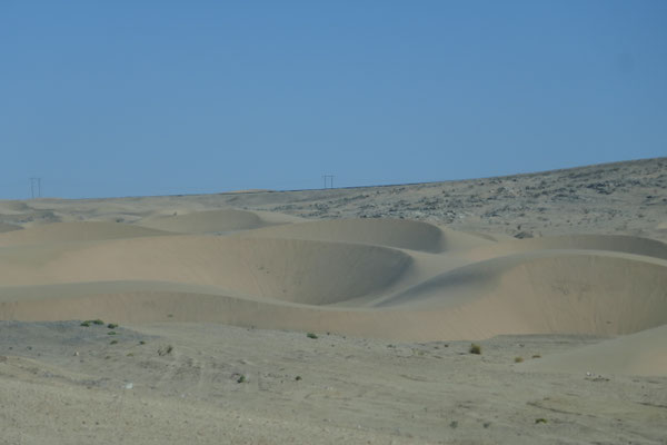 Packen. Gelungene Tage! Ab zur nächsten Etappe: drei Tage Lüderitz, "Alte Villa Gästehaus". Auf dem Weg sehen wir Baumaschinen, die Sanddünen, die sich teilweise auf den Eisenbahnschinen türmen, abtragen. Vor zwei Jahren war die Eisenbahn blockiert und nur die Strasse wurde freigehalten. Der kräftige Wind bläst eimmer wieder Sand über die Schienen und die Strasse.
