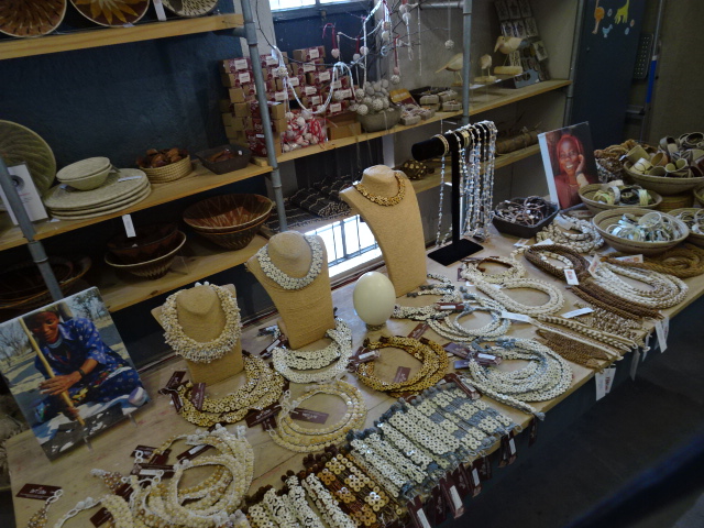 39 Grad im Schatten, heute ist ein besonders heisser Tag. Wir flüchten in den Schatten und besuchen dann das Namibia Arts & Craft Center.(Ruth: nachdem ich mich geweigert habe, weiterhin in der Mittagshitze durch die Stadt zu laufebn!!!) Und werden an verschiedenen Ständen fündig. Leckerer selbstgepresster Zitronen- und Ingwer-Saft. Statt des Zuckers hätten wir eine Kugel Zitroneneis reingetan, das wäre wohl die Krönung gewesen. Die Idee heben wir uns für's Filter- Café auf.