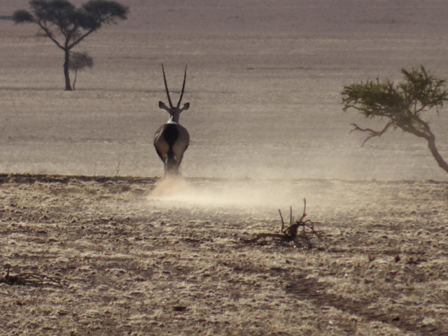 Mal ein paar Oryxe am Wasserloch vor uns, dann wieder die spielenden Dazzies, ansonsten wenig Action um uns herum und trotzdem mehr Eindrücke, als die Sinne auf einmal verarbeiten können. Diese Tage werden noch einen langen Nachhall haben.